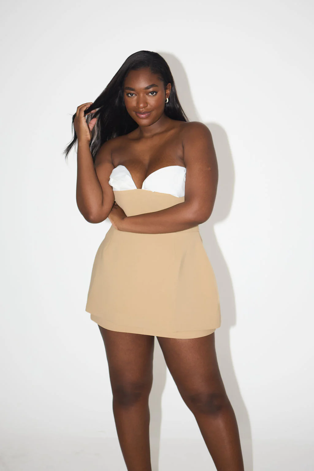 Welcome our signature cinch like you’ve never seen her before in tops. This peplum design is crafted with structured boning and darts and a longer length to take the OM cinch to a whole new level. Adorned with gathered cups in a contrasting crisp white, it’s all about the details for our muses.