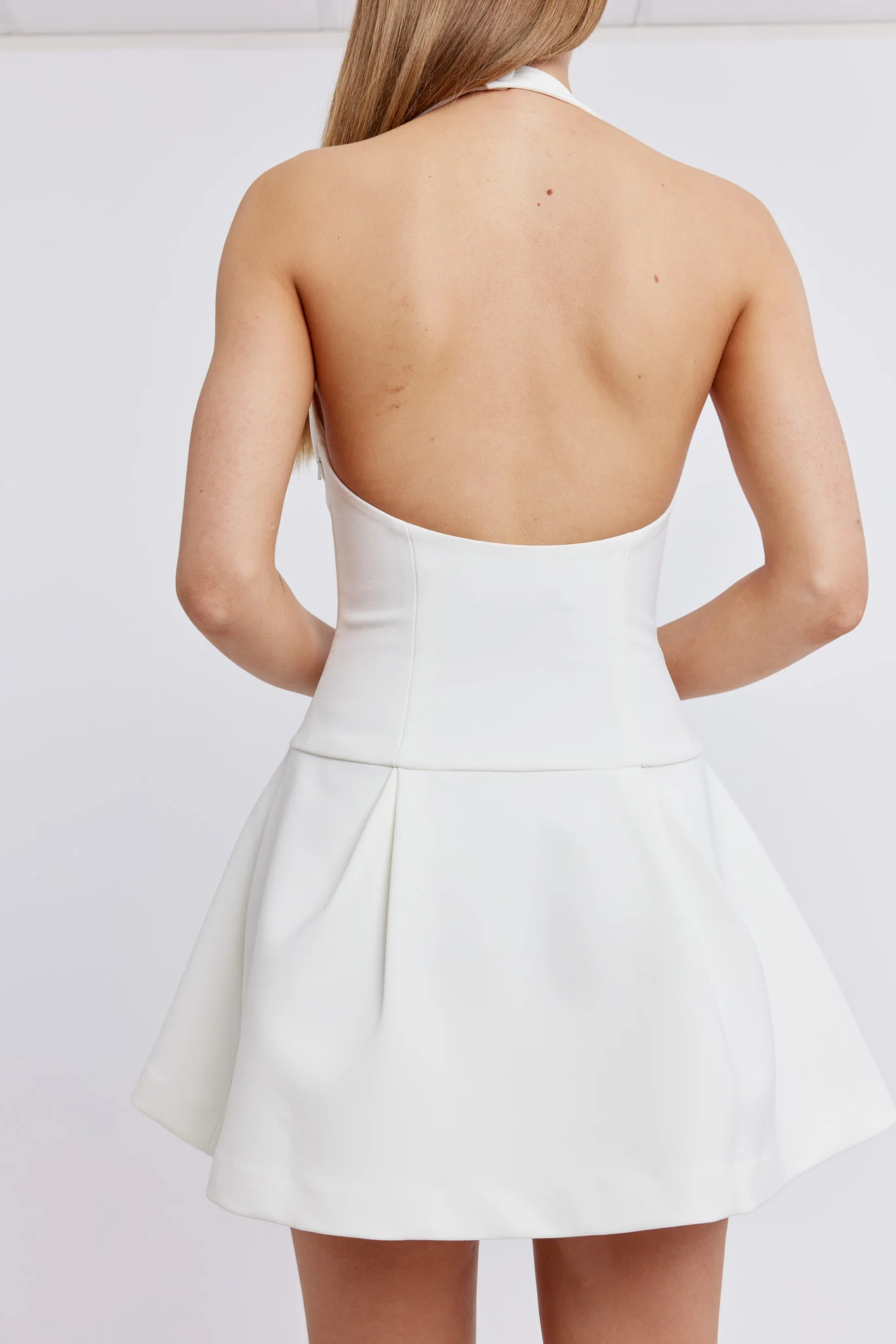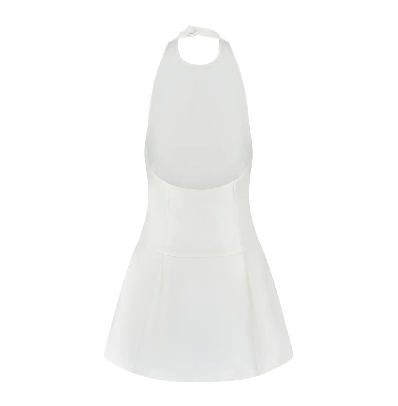 The timeless piece that exudes elegance. Crafted in a crisp white, this is a staple for every muses wardrobe. Boasting a sophisticated halterneck, two subtle darts for that Odd Muse signature cinch and a curved backless finish all defined by the classic drop waist. It’s all in the final touches for our muses.
