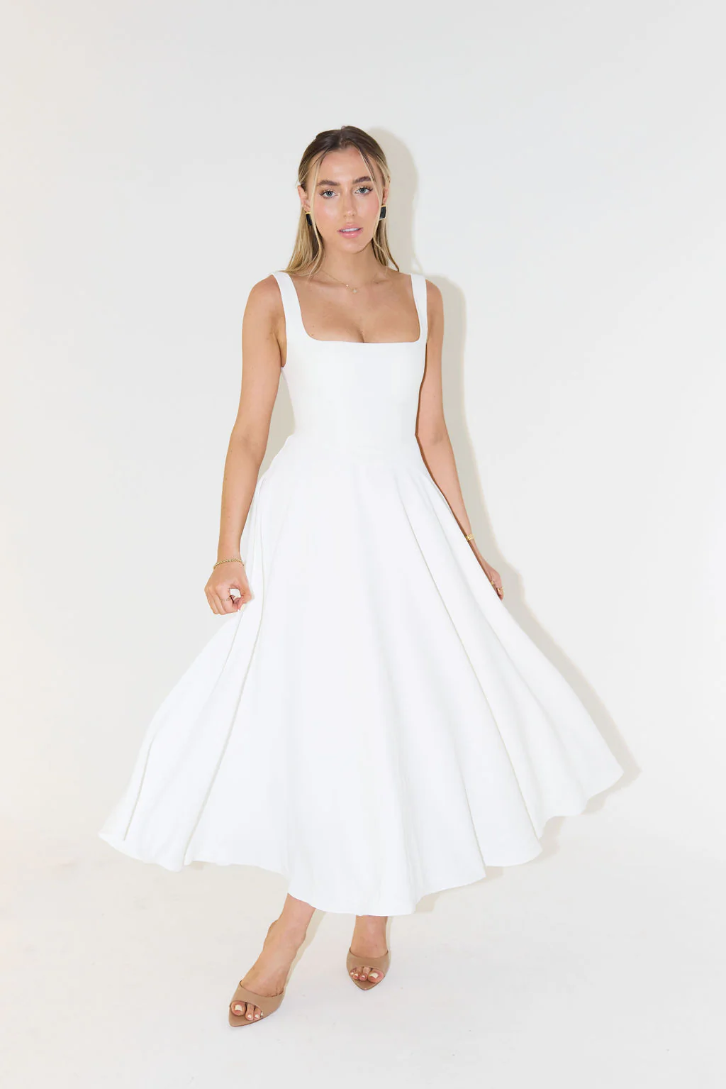 This timeless square neck is a whole new design for Odd Muse, crafted and developed on our Founder Aimee’s trip to visit our manufacturer, this piece was curated with an abundance of personal touches. A sneak peek left our muses going crazy and here she is, now in a crisp white iteration. Featuring a flattering square neckline and the most elegant shaping with built in cups to support our muses. If elegance was a dress, she would be it.