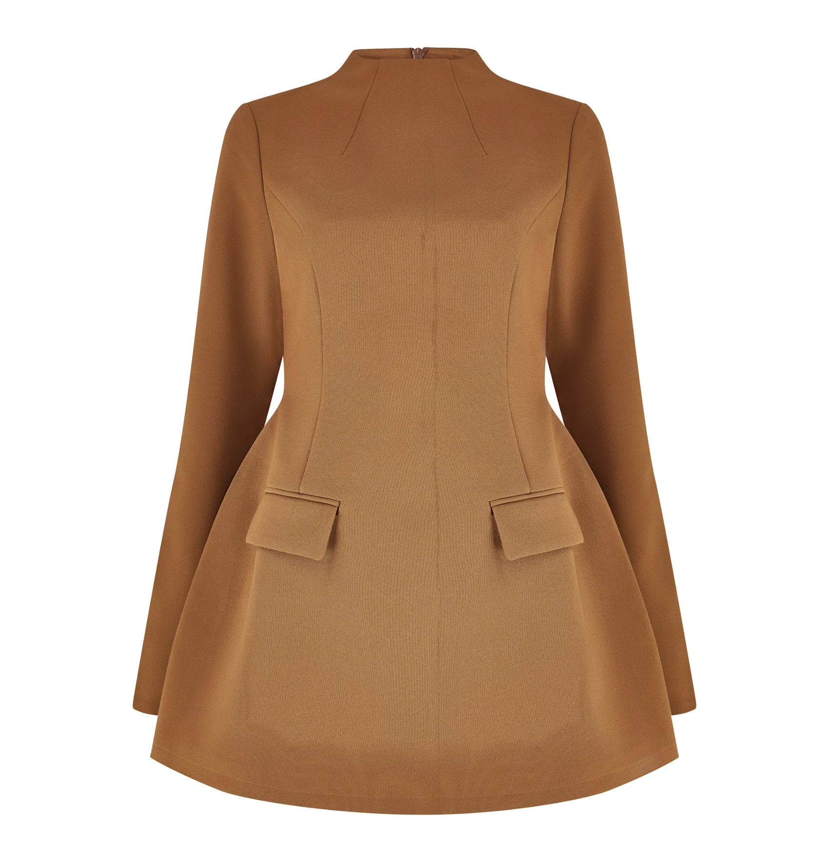 Our coveted split sleeve is back for fall in a olive hue. If sophistication was a dress, she would be it. Featuring a high neck, our signature cinched waist, the ultimate muse flappockets and long sleeves with a discreet slit, it’s all in the details for our muses.