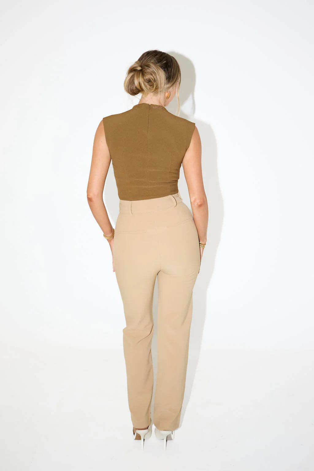 You know and love our coveted wide leg trousers, now meet our straight leg trousers muses. In our staple camel hue, these are one for your forever wardrobe that can take you effortlessly from day to night and season to season. The versatility is unmatched muse.
