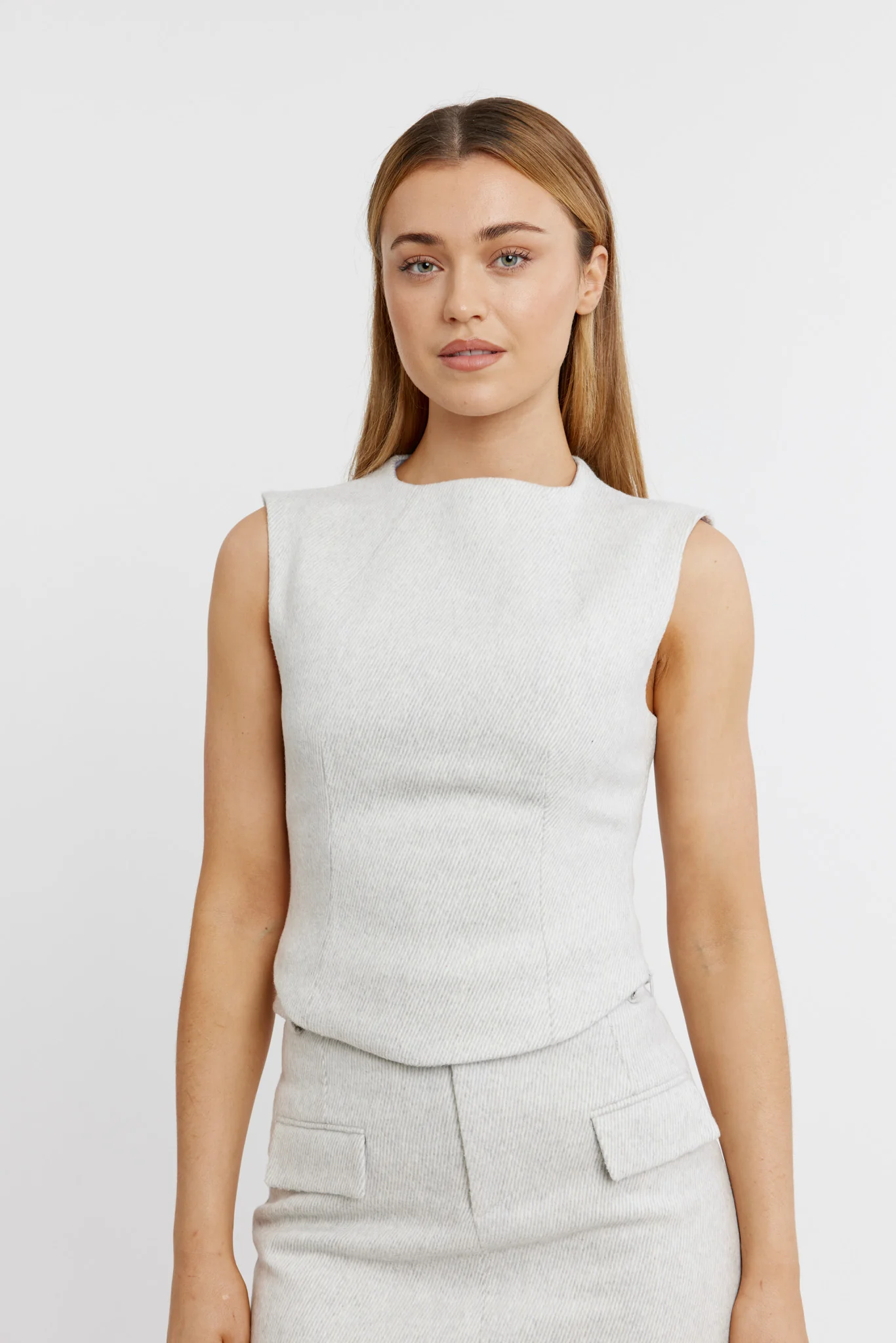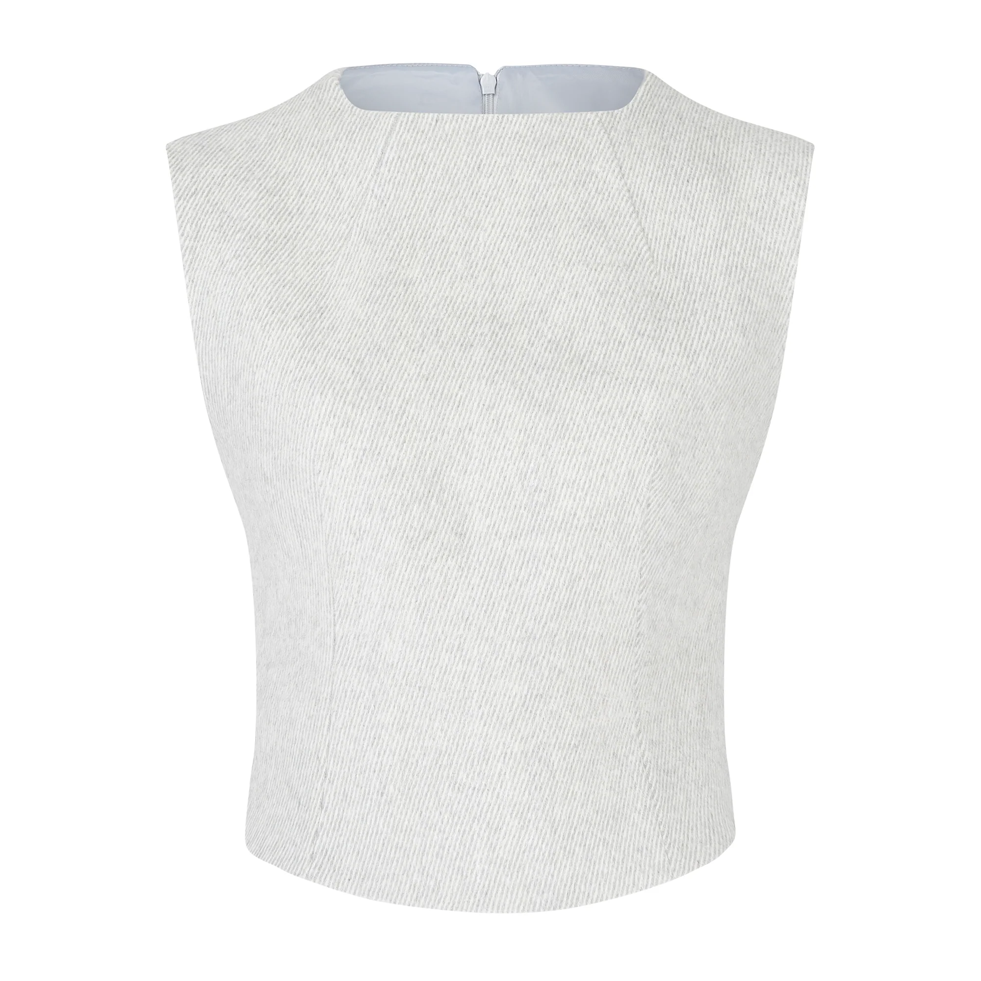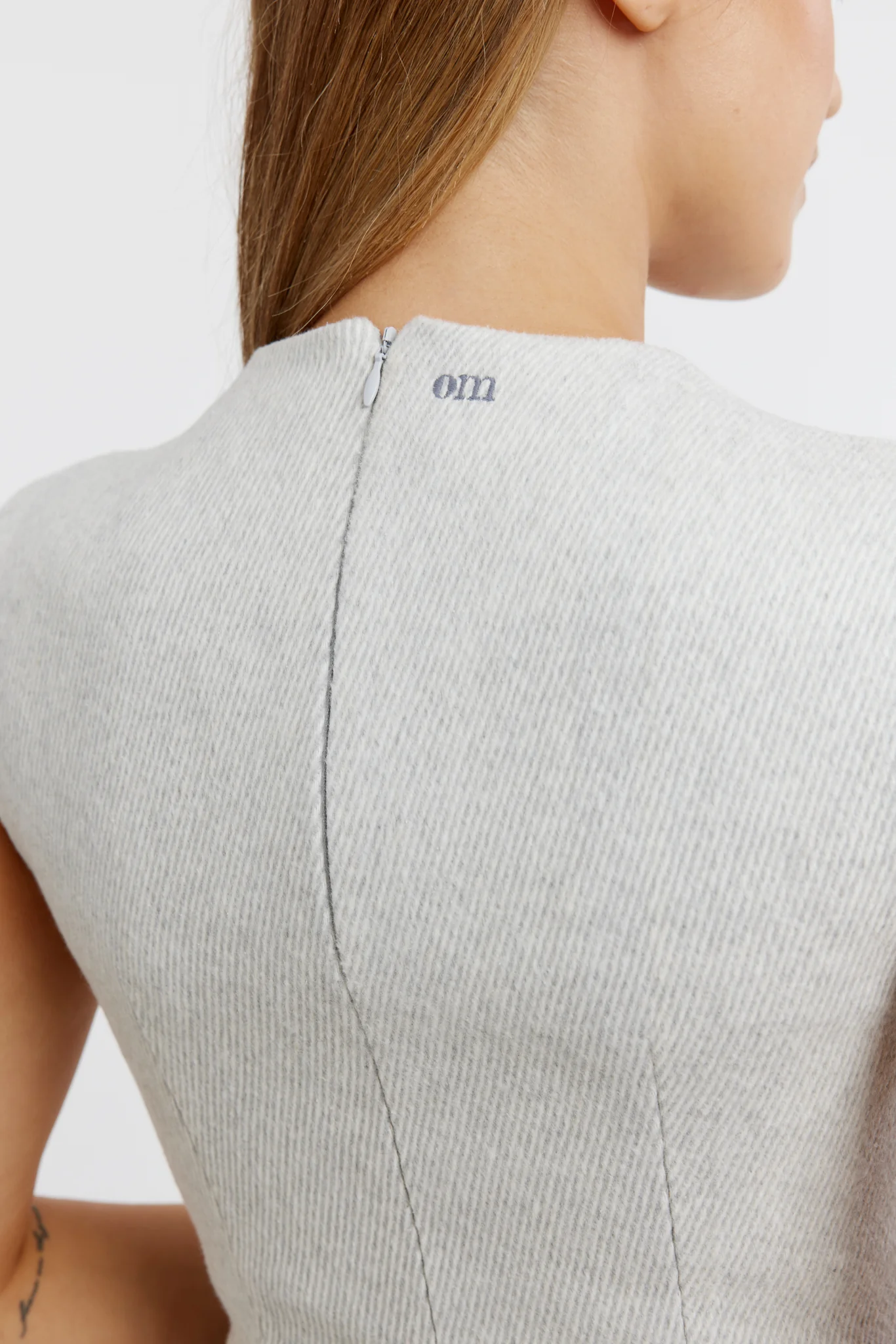 Odd Muse meets luxurious tweed where simplicity is infused into statement wear. Part of a cultivated three-piece, consider this your ultimate muse uniform as the embodiment of all it means to be chic. We’ve taken our sought-after sleeveless simple statement top and crafted it from our first-ever tweed, soft yet structured for the ultimate muse look. Boasting a cool grey colourway, an understated high neck and a subtly curved hem completed with a hidden zip tailored to effortlessly hug your figure. It’s all in the final touches for our muses.